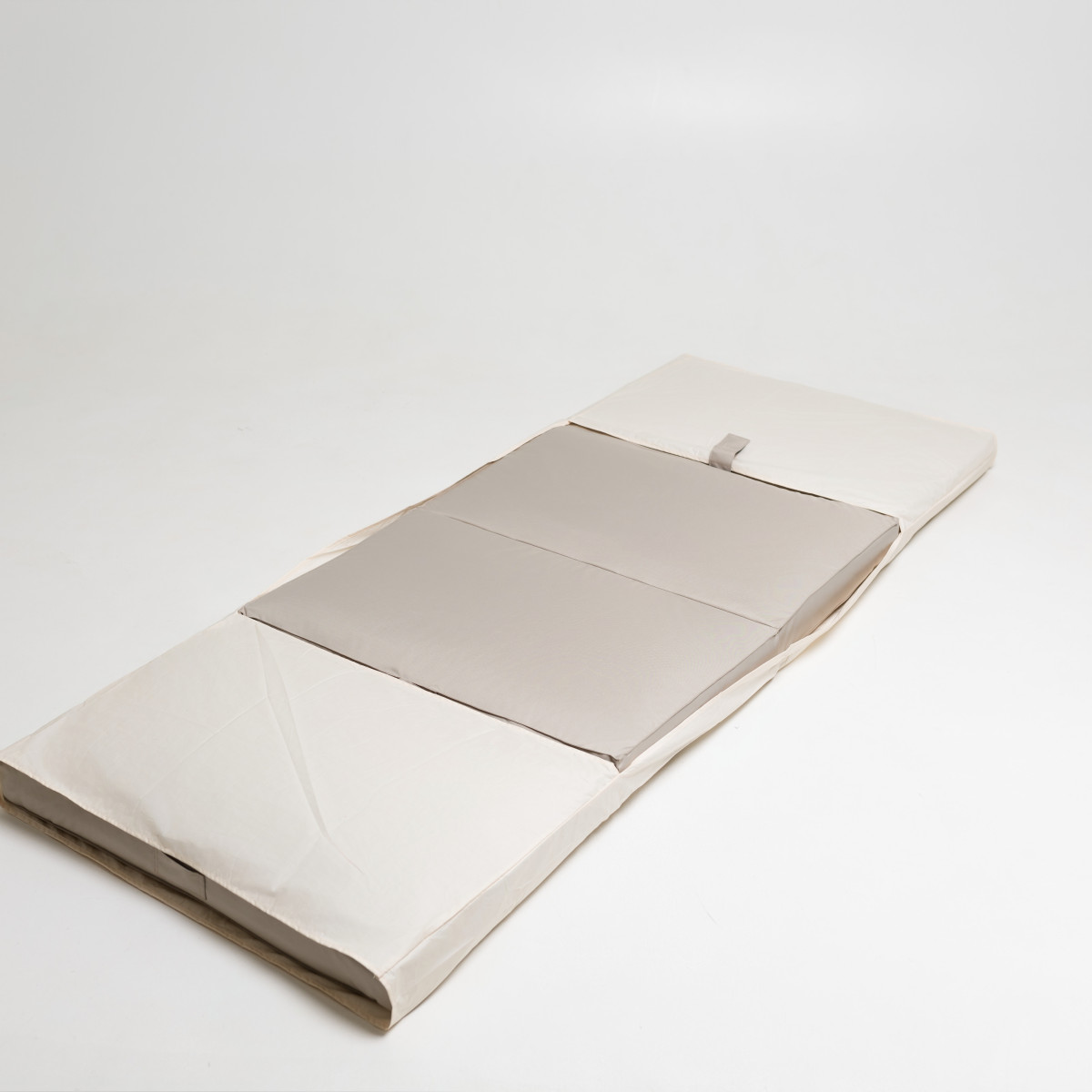Матраци Flexio складаються в кілька разів і важать трохи більше 3 кг, тож їх легко зберігати й переносити. У шафу, на балкон, у багажник — вони помістяться всюди. А ще їх можна взяти із собою в подорож або просто перенести з кімнати в кімнату — навіть дитина впорається!