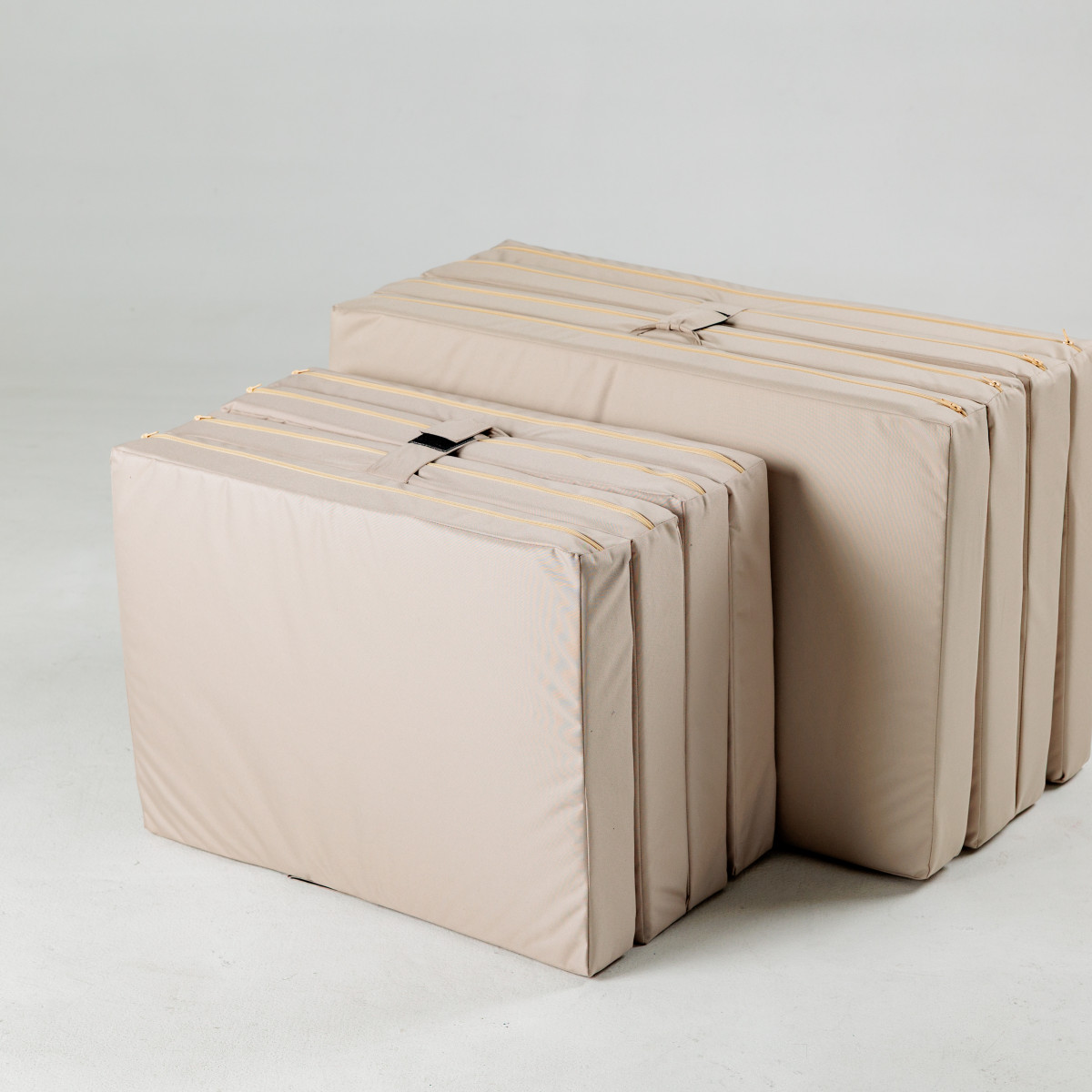 Матраци Flexio складаються в кілька разів і важать трохи більше 3 кг, тож їх легко зберігати й переносити. У шафу, на балкон, у багажник — вони помістяться всюди. А ще їх можна взяти із собою в подорож або просто перенести з кімнати в кімнату — навіть дитина впорається!