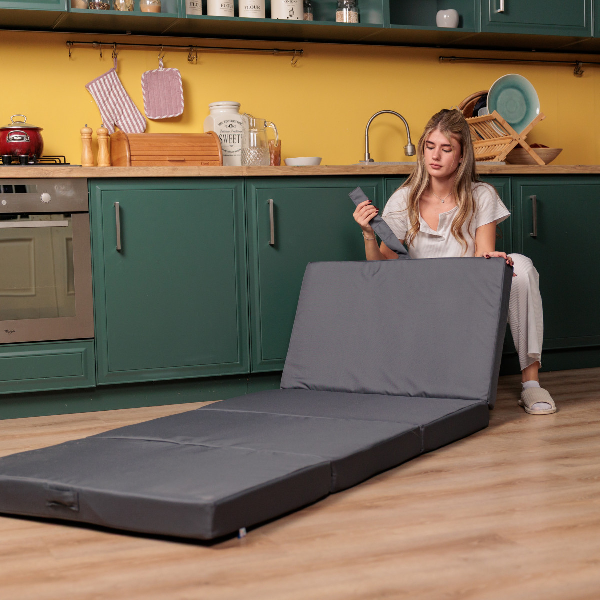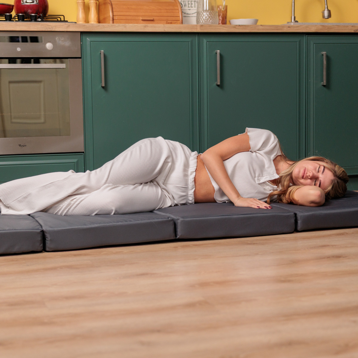 Матраци Flexio складаються в кілька разів і важать трохи більше 3 кг, тож їх легко зберігати й переносити. У шафу, на балкон, у багажник — вони помістяться всюди. А ще їх можна взяти із собою в подорож або просто перенести з кімнати в кімнату — навіть дитина впорається!